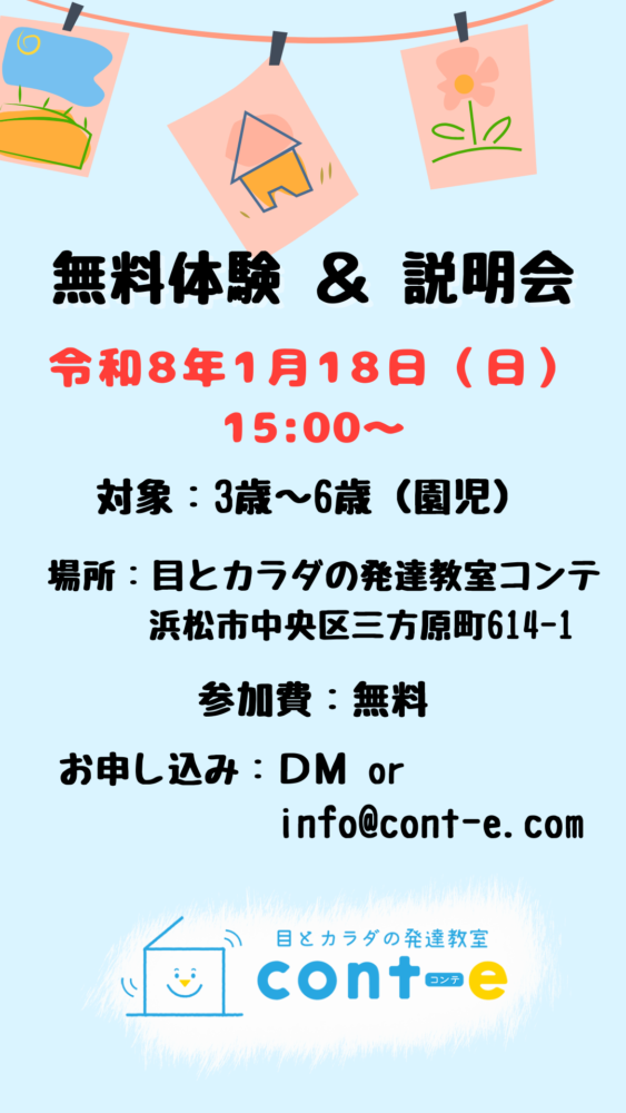 令和8年 1月18日(日)15:00~、目とカラダの発達教室コンテ 無料体験&説明会のお知らせ